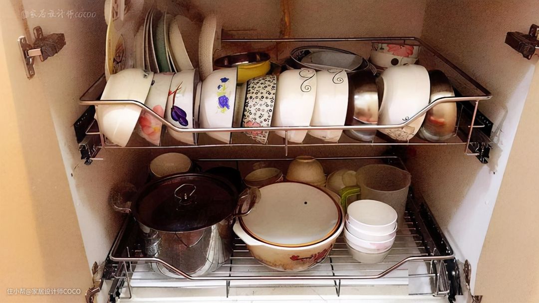 @家居设计师的温馨提醒:网上特别流行的那种升降式拉篮,看似很合理,但绝对是智商税,不建议安装。