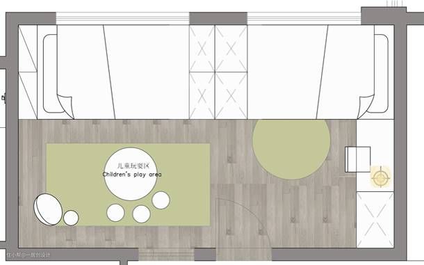 也可以提前做好衣柜,前期作为收纳,收纳主要放置孩子的各种玩具、日用、在游乐区主要放置小帐篷、滑梯等适合孩子游玩的东西。后期孩子长大了需要独立空间就可直接添置所需的移动家具。