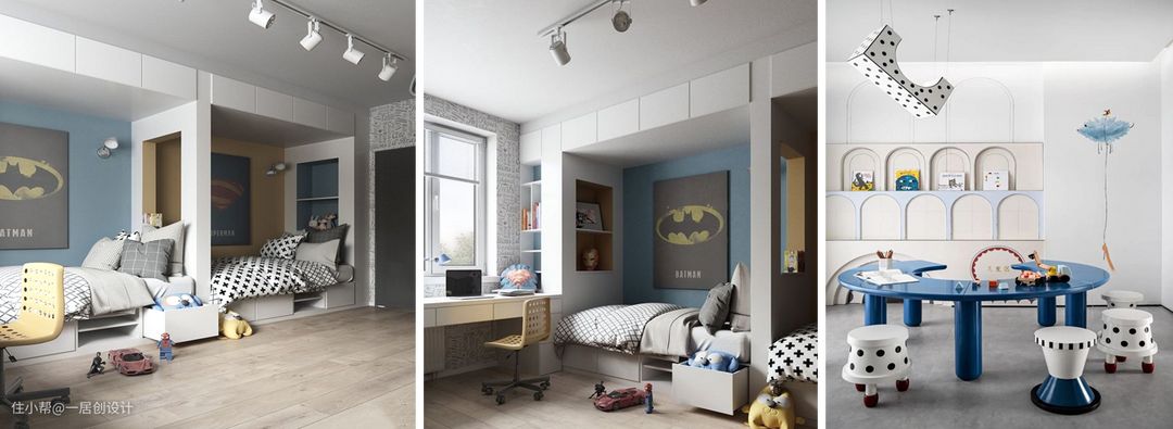 在儿童房的装修上,要面临孩子不同成长时期的需求。以及如今二胎三台政策的开放,多个孩子更融洽的使用需求。才能根据家的大小进行有效设计