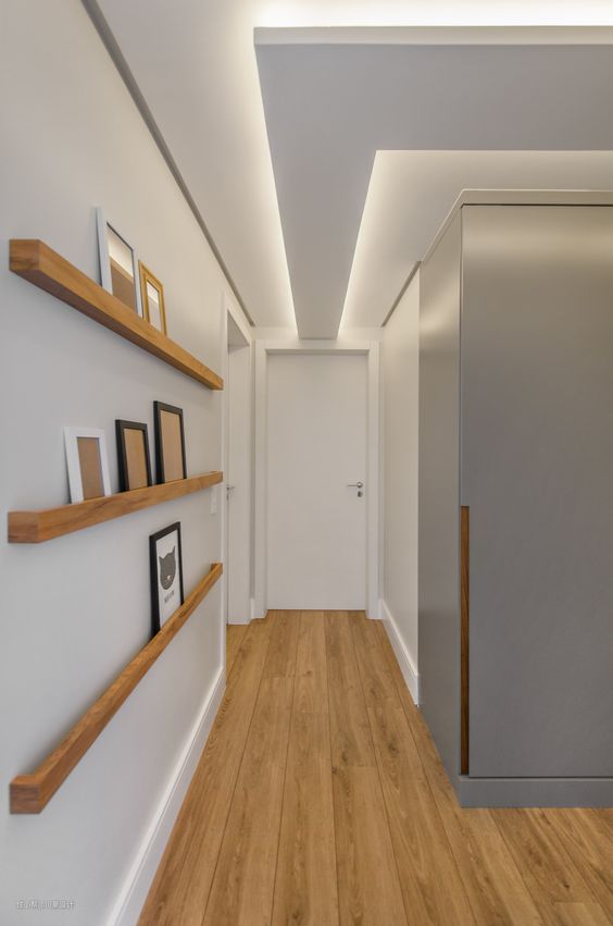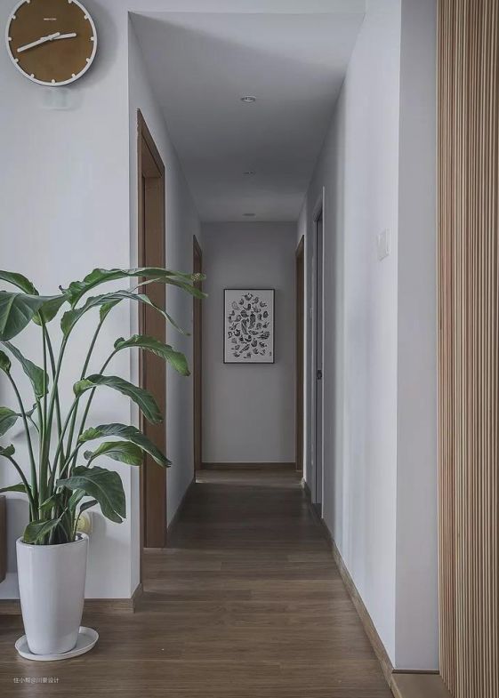 墙面挂上家人的照片或旅行拍的风景照,都可以作为墙面的装饰,让整个空间更显温馨。搭配摆放的绿植,让走道空间更有呼吸感。