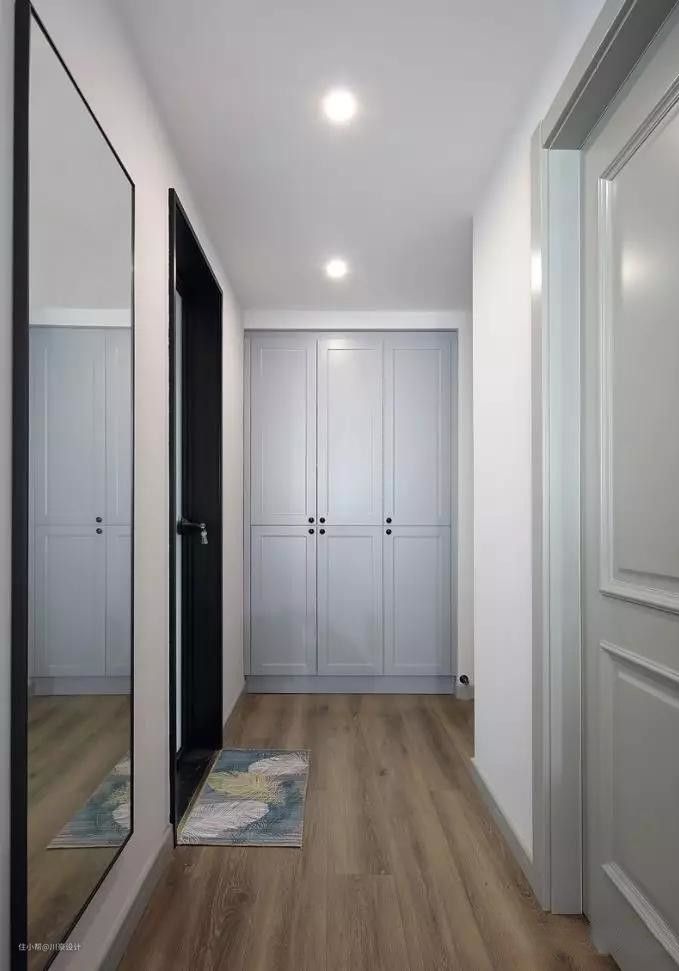 如果走道狭窄拥挤那就放置墙面镜,延伸整个空间的视觉效果,同时日常还能当全身镜使用,很是实用。