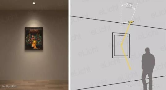灯具的选择也同等重要,用灯光照亮装饰画,让原本普通的装饰画看起来昂贵又高级!需要注意的是首先要选择高显色性的灯具,其次灯具的安装,需要与画中心离天花距离线的夹角保持30度以内的位置。
