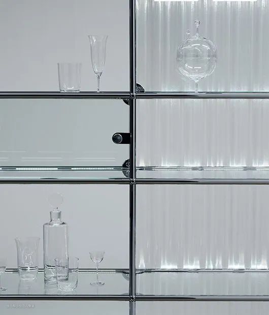白色层板和不锈钢的线性框架搭配出若隐若现的存在感,轻松营造了更高级的家居空间。