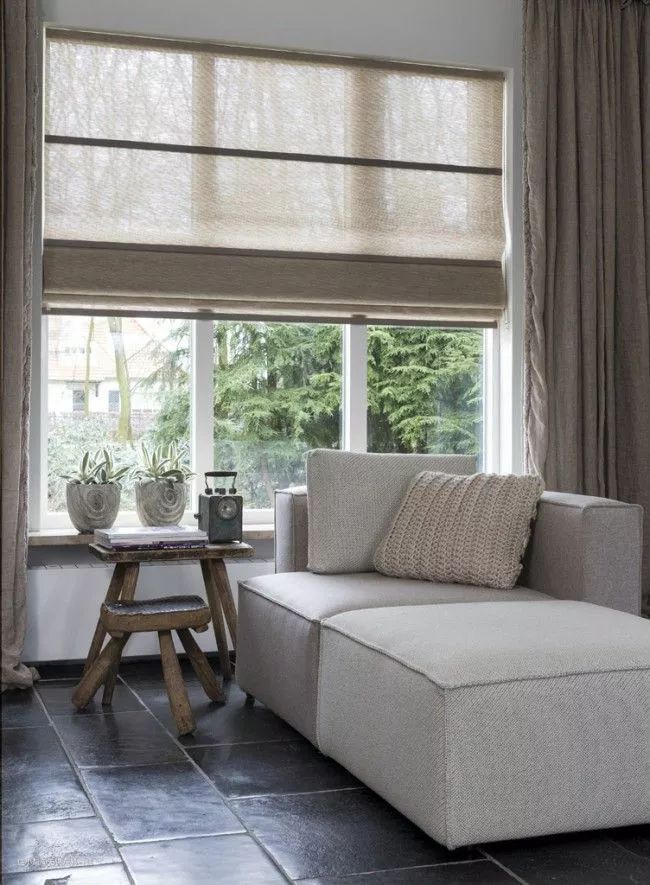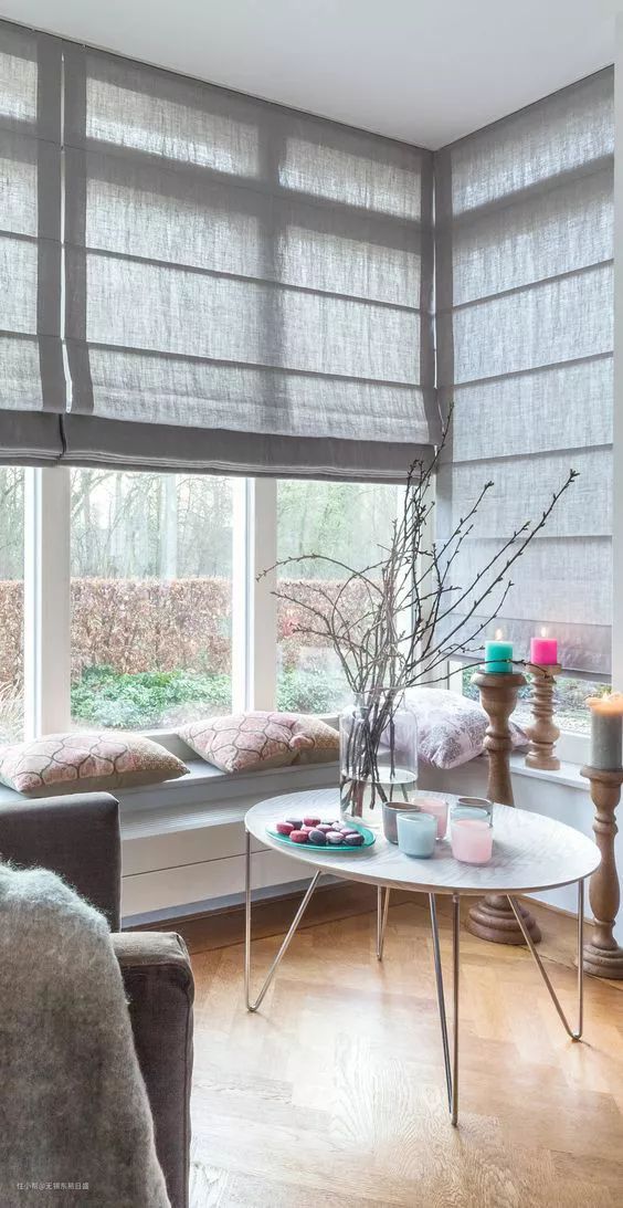 南边窗户:南边的窗户一年四季都有充足的光线,选日夜帘、布艺帘是个不错的选择▼
