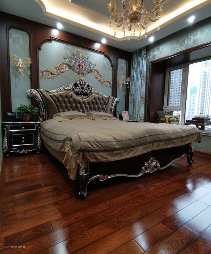 美式比欧式更容易搭配些,欧式特别是北欧风往往需要一些软装来进行搭配协调,来制造氛围,而美式利用地板搭配就能为整体家装大大加分!