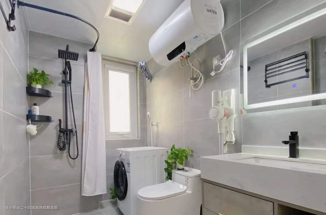 卫生间风格以黑白灰为主。
