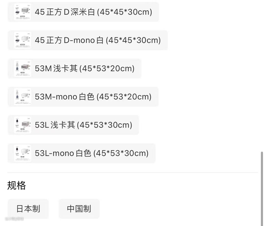 比如现在比较火的抽屉式收纳箱,它家就分日本制和中国制,日本就是原装进口的,跟国内的区别就是尺寸稍有不同,但进口的明显就贵一些。