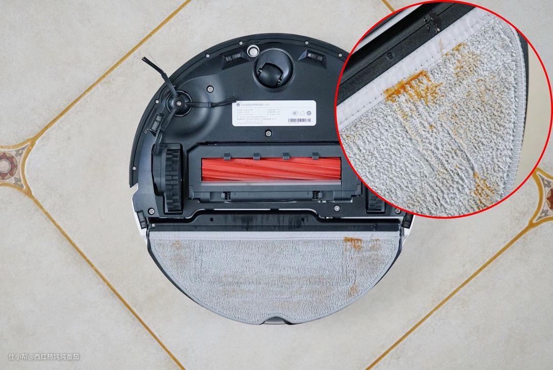 ①原本楼主以为石头G10采用的震动拖布虽然在“藏污纳垢”方面不如长绒毛的旋转拖布,在顽渍清洁上会更有优势,但实际上并没有,震动拖布甚至还要稍微逊色于旋转拖布;