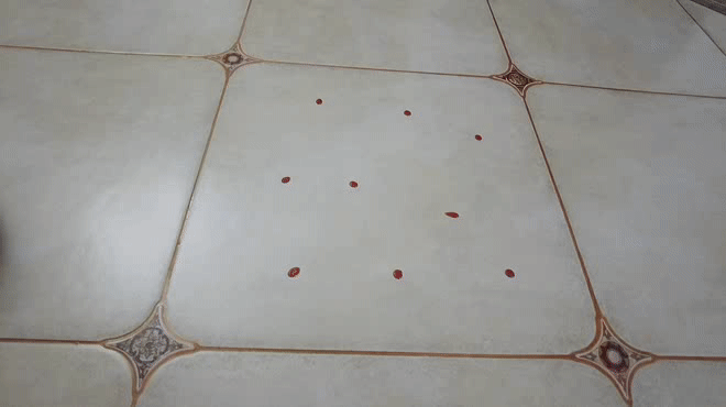 首先在两块瓷砖上分别均匀抹上约 9滴番茄酱。为了尽可能模拟真实场景,每一滴番茄酱的量并不算大。我觉得这应该是日常家居环境中能够见到的最大量的湿垃圾了 ▲