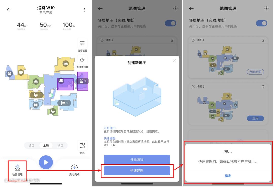 但是接下来这个功能的缺失,却让人有些难以理解。在各品牌扫地机器人纷纷推出“快速建图”功能的当下,石头竟然迟迟没有跟进这项功能;而追觅W10则在首发之日起就具备了这项功能 ▲