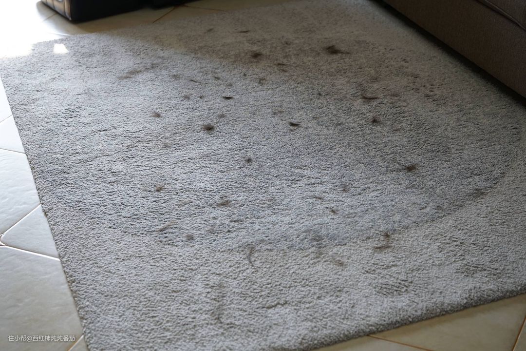 在经过两遍清扫之后,从侧面再拍一张,结果如上。地毯上依旧残留了大量头发,甚至是整坨的头发 ▲
