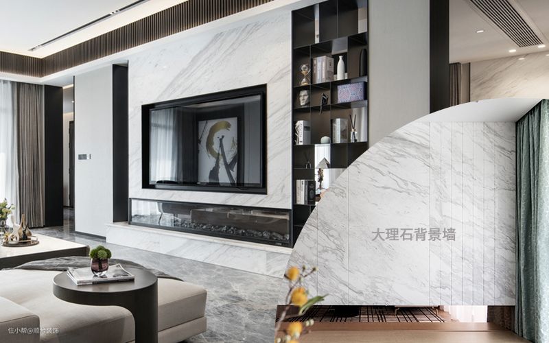 背景墙所选材料也很多,木板很百搭、大理石高级时尚、墙纸墙布图案文纹理多样、软包硬包造型丰富、乳胶漆简洁又大方、护墙板耐用舒适……