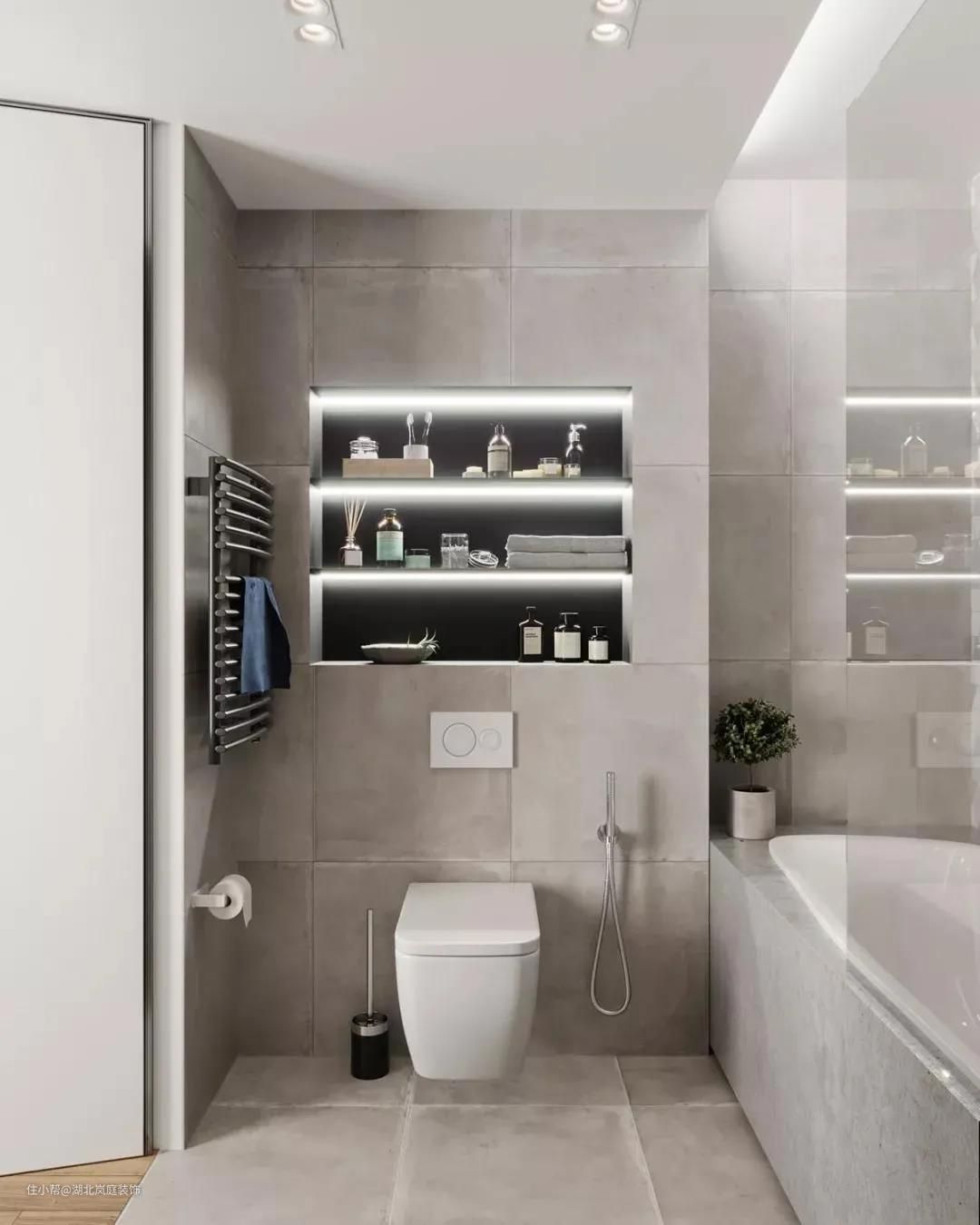 壁龛在卫生间的空间里堪称是网红新宠~因为卫生间的面积一般相对较小,而日常要用到的东西又比较多而杂,所以“收”“藏”“展”是必须要考虑的问题~而壁龛这样的设计方式恰好简洁不占地,当仁不让地成了让卫生间更具质感的有用担当!