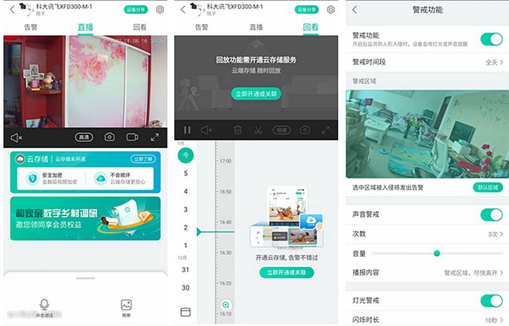 最后提一下,为了能够更好的进行回看,科大讯飞XDF300-M摄像头还是要开通云存储,才能实现更方便更安全的视频回放,作为与移动和家亲定制的智能设备,用来看家保证安全也是非常划算的。