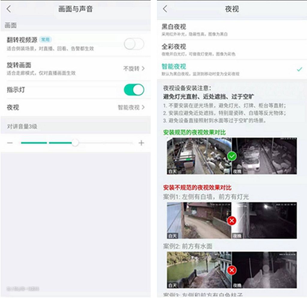 夜视方面,科大讯飞XDF300-M摄像头很有特色,它不仅支持黑白夜视和红外夜视,还可以设置智能夜视,也就是可以自动切换全彩夜视,让夜晚拍摄的更清晰更真实,相比于黑白的夜视效果,全彩画面更为真实。