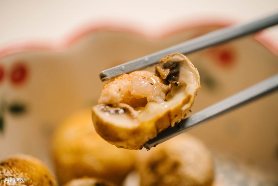 一口咬下去,虾滑和口蘑的汁水都会微微渗出,口感完全不会干燥,味道鲜掉眉毛~~