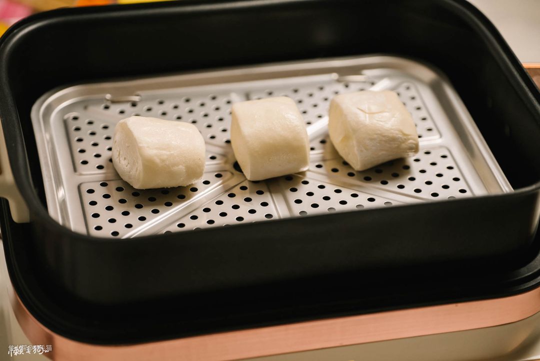 先给深盘里加入1-2cm的水(注意不要没过蒸盘),然后支上蒸盘,就可以开始使用蒸锅功能了。