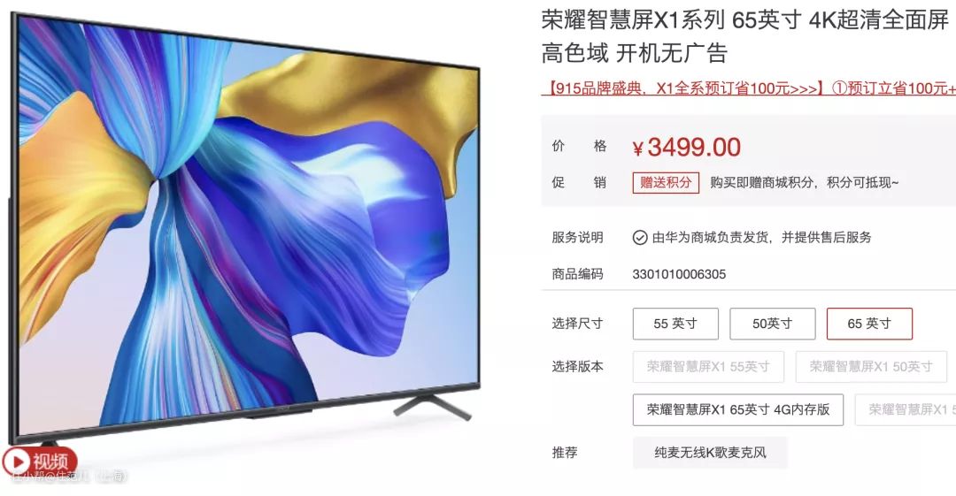 目前价格也在万元左右,除了系统(又是系统),也是吊打荣耀曾经“无出其右”的华为智慧屏V65。