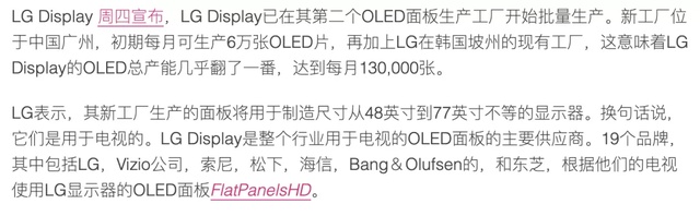 电视方面的OLED就得看LG了,是最早做OLED的,电视大尺寸OLED屏目前只有他家能做。