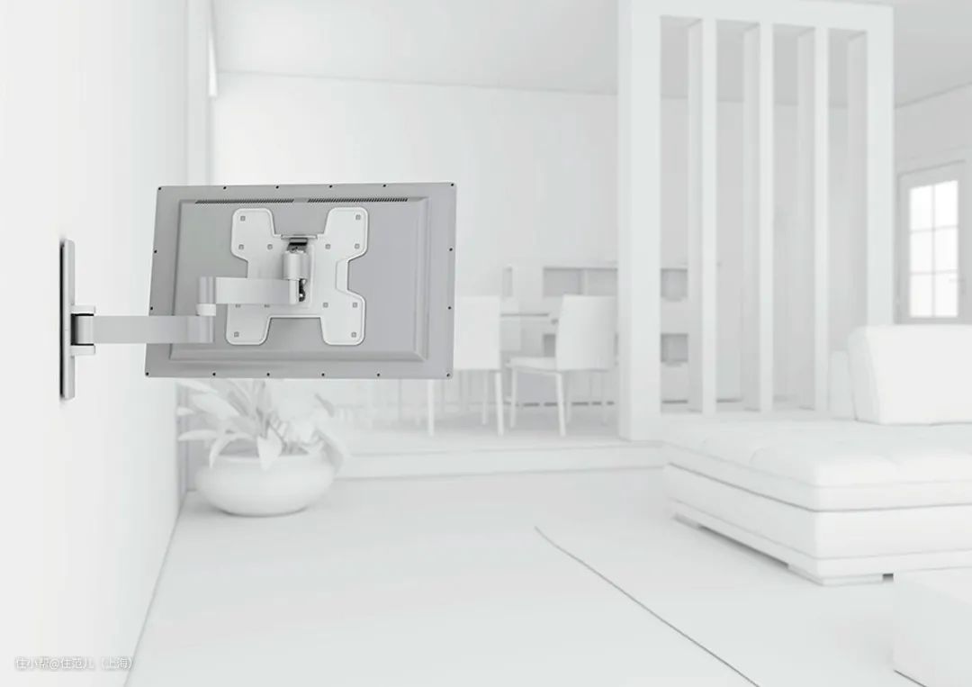 不用非得做电视墙,也不用被锁死在沙发上,平时贴墙不占地方,用的时候随意调角度。