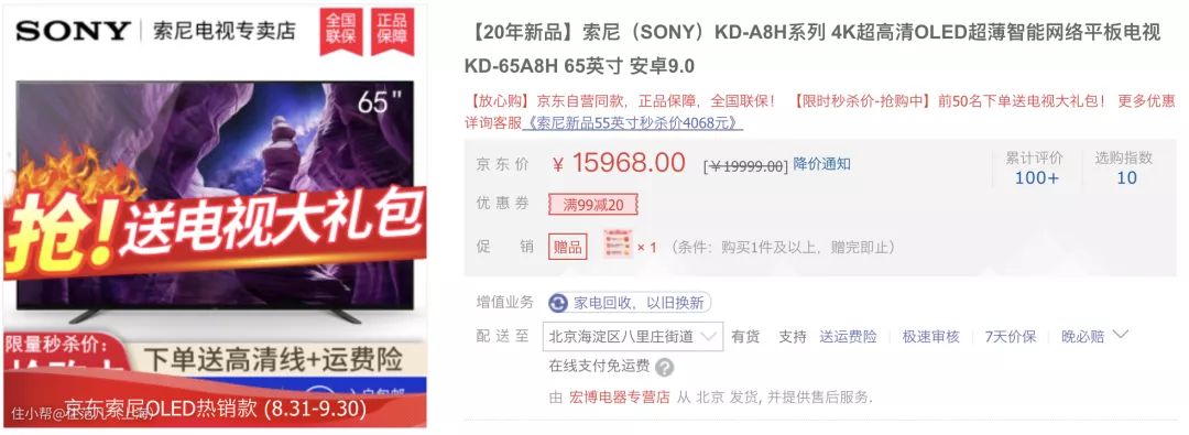 65寸的KDA8H,线下26000左右,算上索尼的好感度的话,也能跟LG抗一下。