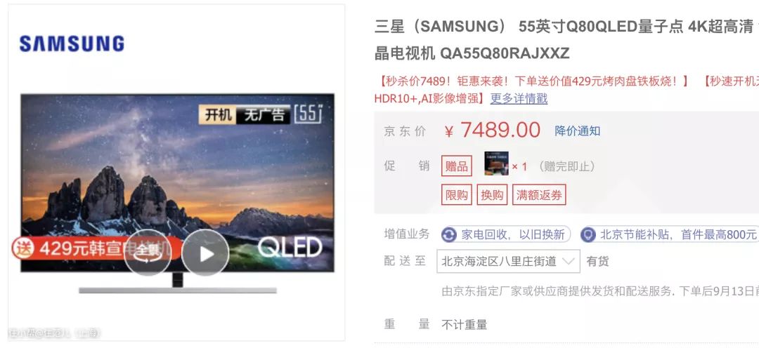 三星的几款QLED(没错,本质也是液晶,可以看作是品牌打差异化的点)刷新率和运动补偿做得好,很适合玩游戏、看比赛啥的。