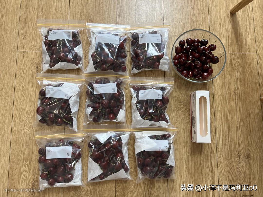 像车厘子、菌菇这类食材存放时有潮气就会变质,用保鲜袋的同时可以包裹一张厨房纸,吸附潮气,延长保鲜时间。