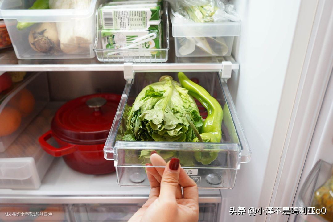 冷藏区里可以分层分类放置食物,把可以直接入口的食物,如剩饭剩菜、熟食单独一层放置,远离生蔬菜、生肉等食材。