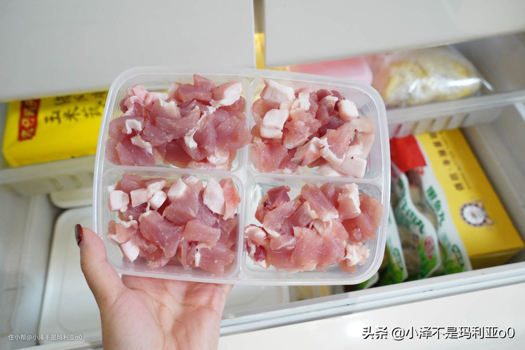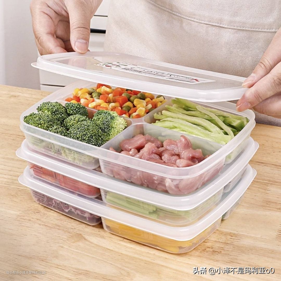 我们从市场买回来的肉类,不要直接整块冷冻,每次用的时候再反复拆封、反复解冻,这样很容易引起变质。可以买这种分格保鲜盒,把每顿的份量分好,密封后再放入冷冻区,这样用的时候每次解冻一份就可以了。
