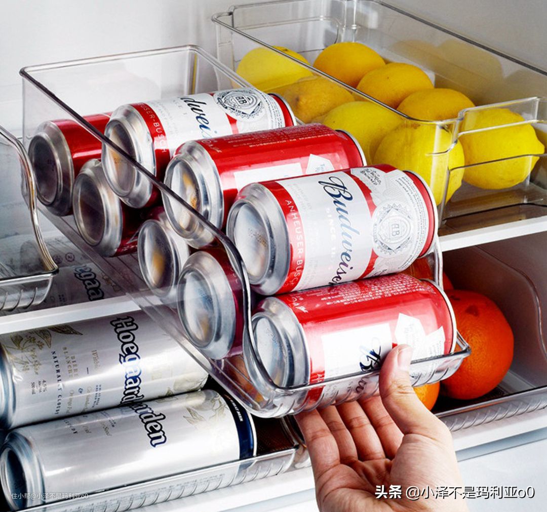 夏天我是绝对离不开气泡水和啤酒的,都是按箱囤货。这种收纳架就是专门用来整理易拉罐汽水,一次可以容纳9罐饮料,超级能装。拿取时还能自动补位,非常方便。