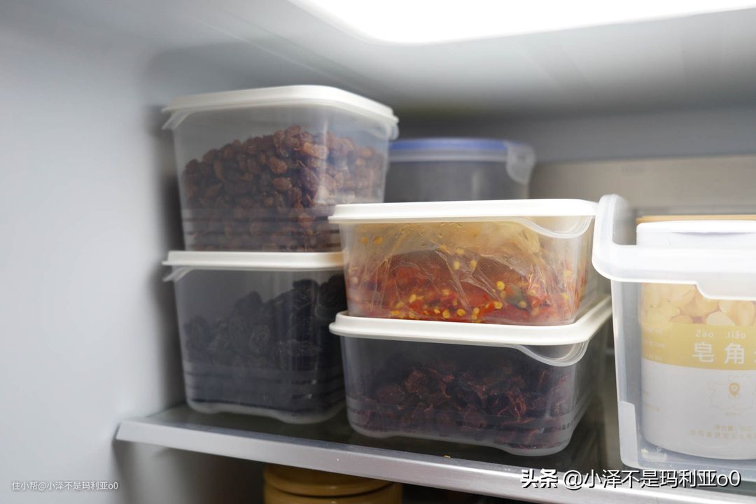 这种带盖子的收纳盒,密封性更好,而且可以叠放,透明的盒体,不用标签就能对存放物品一目了然。冷藏区我用它收纳了很多果脯,一点也没有串味。