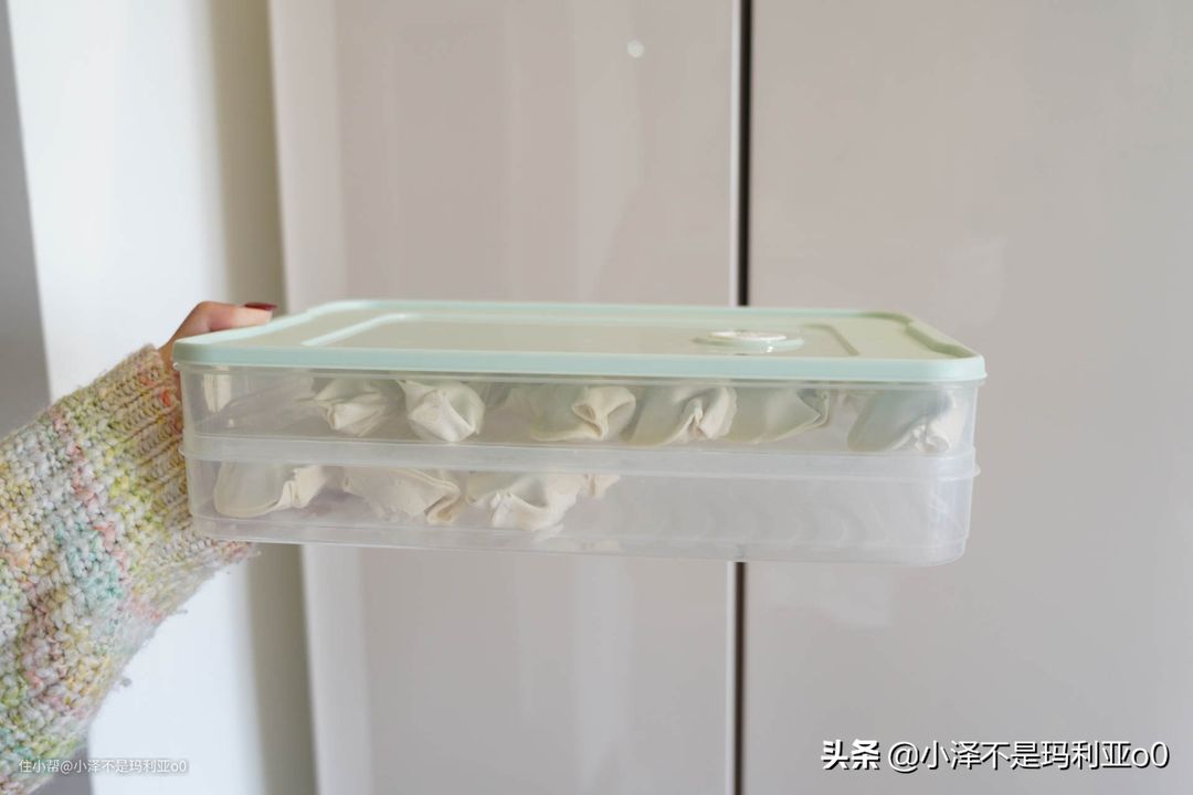 这种饺子盒在过年期间还是非常实用的,包好的饺子放进去更加保鲜。而且它可以多层叠加存放,非常节省冷冻室的空间。这种饺子盒更适合冰箱一侧全是冷冻室的,有一个格子专门存放水饺,就很实用。