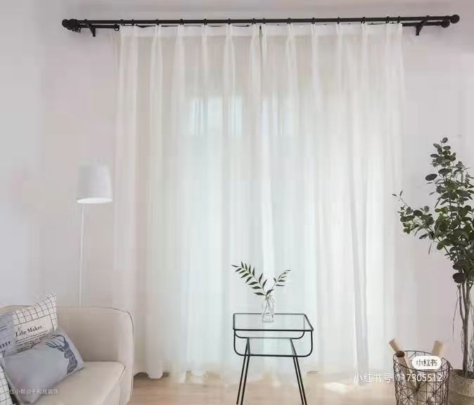 6、 纱质窗帘:这种布料的窗帘一般做搭配,透光性好,而且很容易营造温馨的居家氛围,一般用在客厅,白天只保留纱质窗帘,既能保证室内光线,也具有一定的私密性。