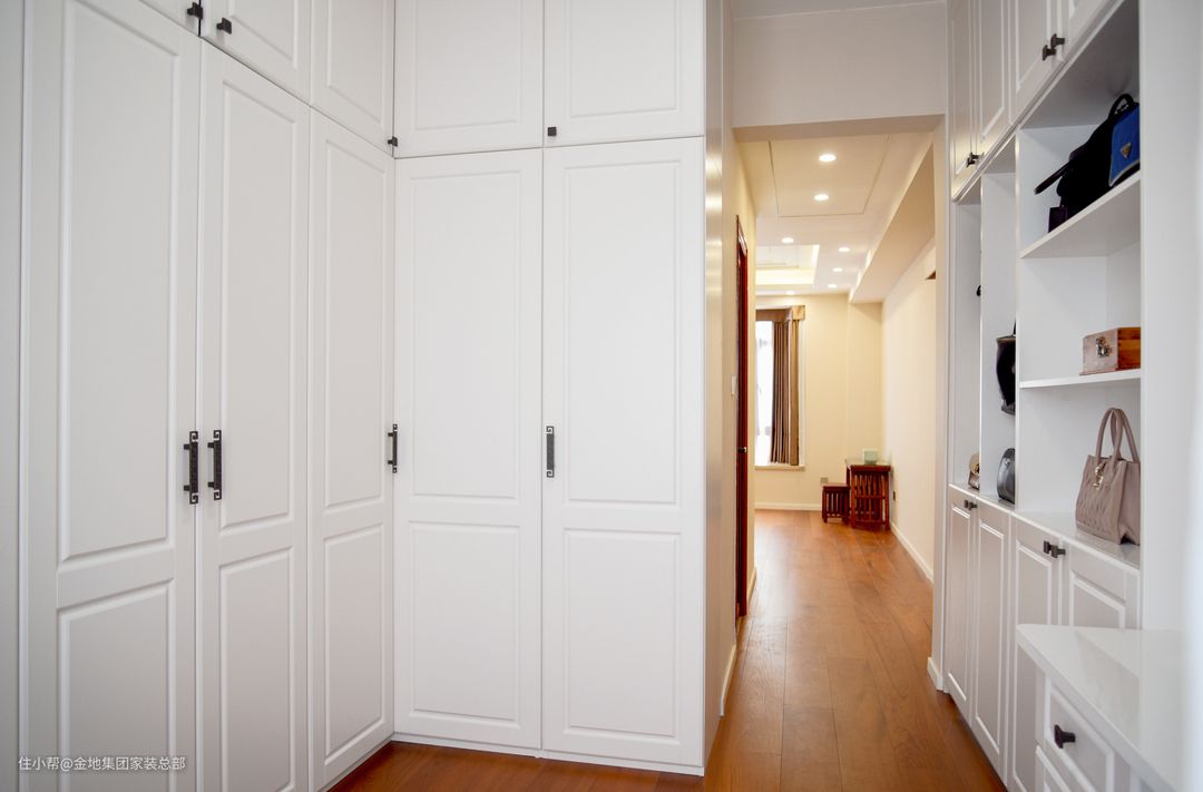 主卧的空间线条干净简洁,如澄莹水色平流缓进,采用淡雅的色彩语言增添温润质感,摒弃过于繁琐的装饰,用线条去低调沉稳地勾勒出清灵雅致,营造出一个休闲舒适的禅意美学空间,更能映射出屋主不浮不躁的心境。同时还配套大衣帽间,里面两个跨度三米的大衣柜带来奢华的震撼感,加上极具功能性的配置,更显摩登精致。