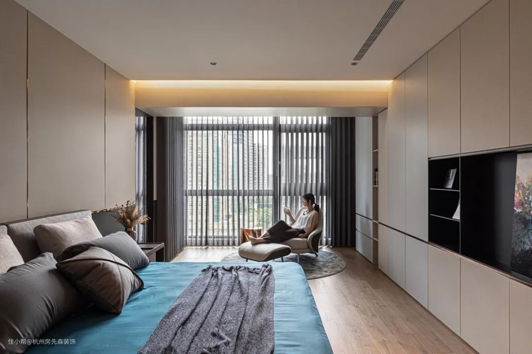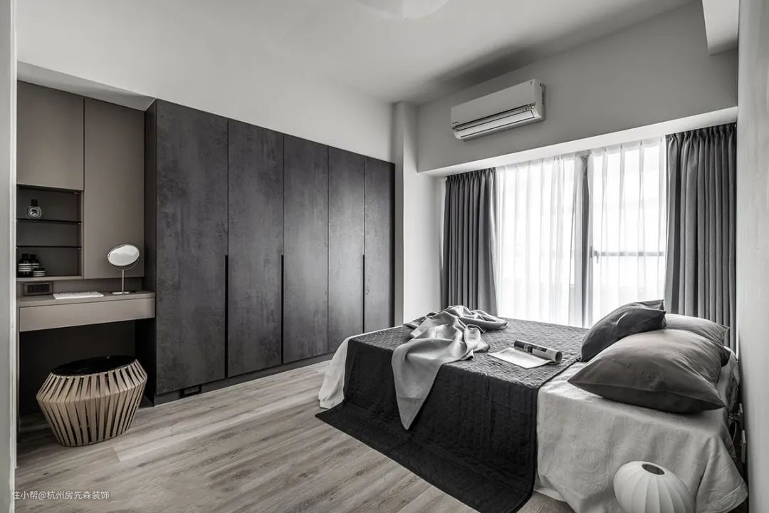 如果你是浅眠的人,别忘了请设计师帮你做气密窗、隔音门等相关的隔音规划。窗帘也建议选择遮光、吸音的款式,将噪音干扰彻底隔绝于外,才能睡得香甜美好。