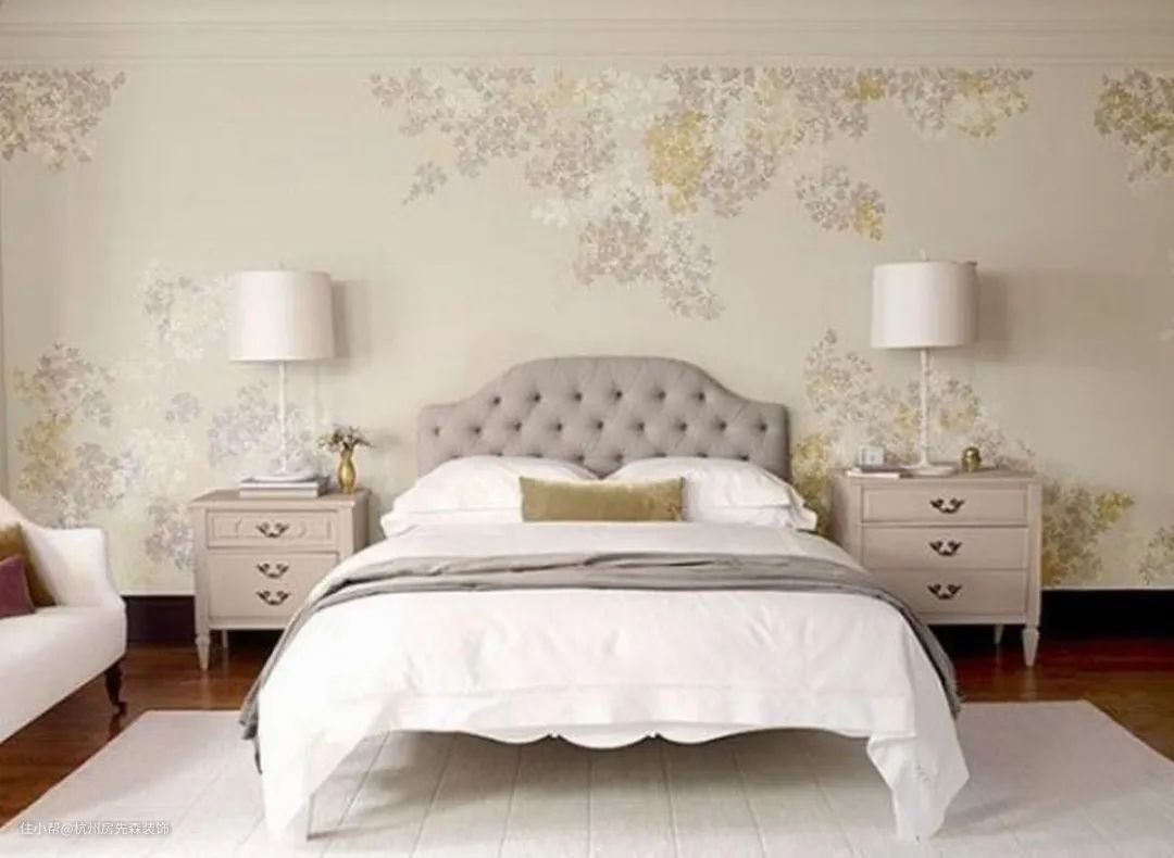 不同色系、花纹的墙面设计,是打造卧室焦点的第一步!你能依照喜爱的风格取向,选用适合的壁纸图纹,如果偏爱低调的奢华风格,不妨选择莫兰迪色混搭花卉图样的壁纸,配以简约床边桌灯,展现名媛式的优雅典丽。