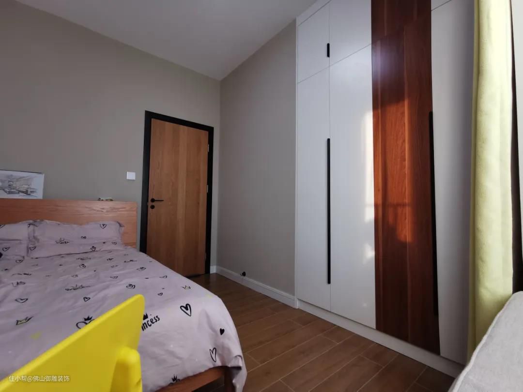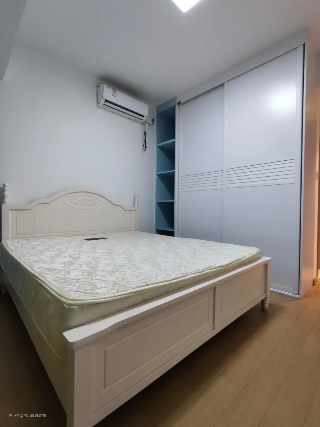 而推拉门的衣柜,哪怕是贴着床、床头柜等家具布置,只要旁边的家具不会太高,都是不会影响柜门开启与使用的。
