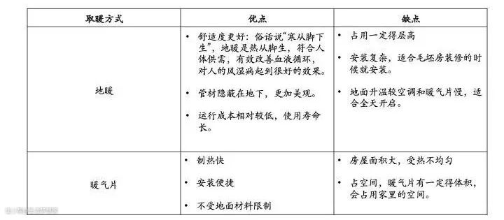 - 如果是毛坯房,地暖或暖气片都可以,但如果是装修好的房子,不建议装地暖,除非拆了重装(大佬可随意选择)。