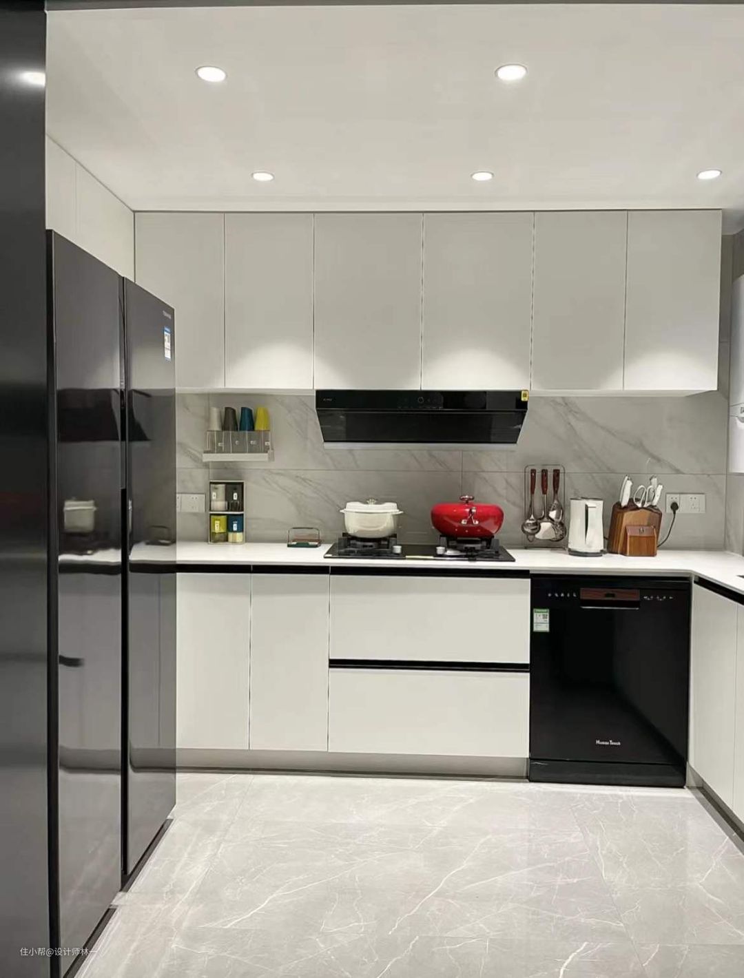 5.厨房做了吊柜两联隐藏式,实现开放式,半开放式自由切换;