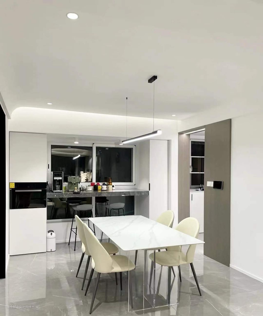 6.餐桌使用了悬浮餐桌,呈现悬浮的既视感,空间会因此显得更加通透;