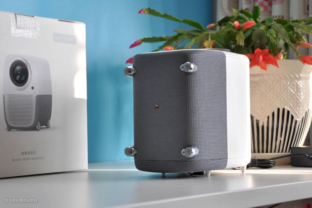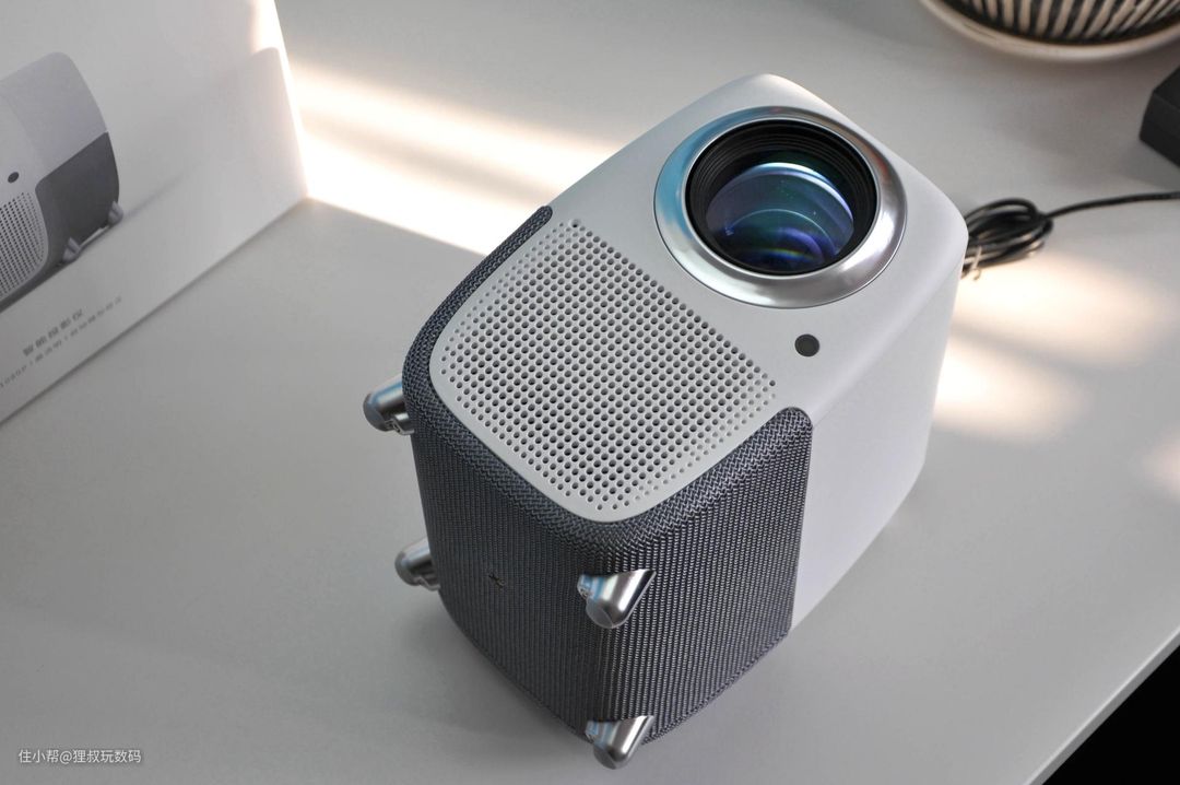 两张泰捷 WEBOX T1S 投影仪实拍图奉上,颜值还蛮高,很有辨识度,你看这机身多白多美。看到这个外观的第一眼你想到了什么?硕大的镜头像不像小黄人的眼睛,仿佛要带你探索全新的视界,我要不要买点贴纸啥的DIY一下?从外观设计的角度来看,泰捷WEBOX T1S以百搭的雅白色作为整体的色调,较为美观沉稳,无论是摆放家中的任何位置都不会显得突兀,与居家环境巧妙融合。这款投影仪的镜头采用了进口全透镀膜玻璃设计,纯玻璃材质的好处就是折射率更高,耐高温的同时且不会影响投影画面,保证不会出现畸变和虚焦等问题。另外,透光度提升30%,使投射的画面变得更加清晰。镜头下方密密麻麻的小孔就是泰捷 WEBOX T1S 投影仪的散热出风口,搭配循环双涡轮风扇,散热效果超好,长时间运行也不会出现过热现象。