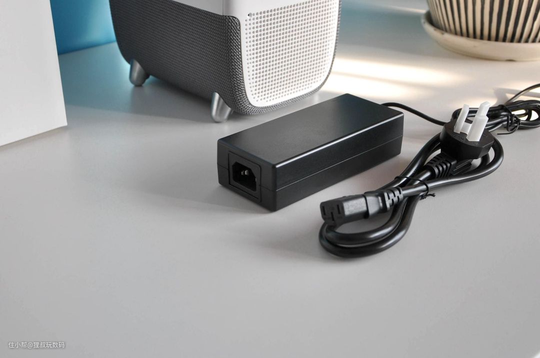 这是泰捷 WEBOX T1S 投影仪电源适配器的实拍图,个头还真不小,适配器和电源线采用了可拆卸设计,这样在现实生活中如果长度不够的话,也可以加装延长线使用,不过就目前来说,在我家的任何地方,这长度也都足够用了。