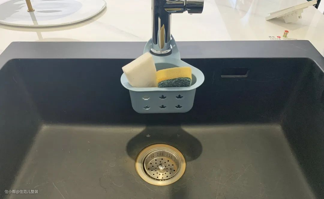 抖音爆款,扣在水槽/龙头上,放置海绵刷子抹布等用品的塑料小篮子。