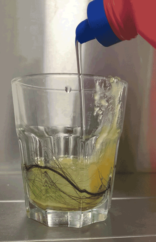 一觉醒来,头发、小片塑料袋、蔬菜叶子几乎不剩什么固体,土豆片没有彻底消失,但也溶解了不少。
