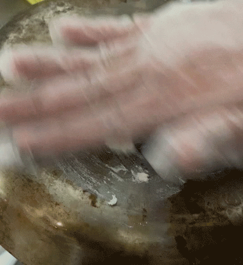 经年累月的顽固污渍需要多来几遍,但也不必手指捏的生疼。