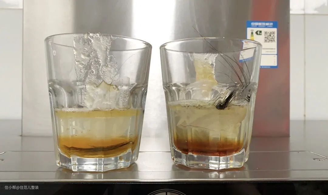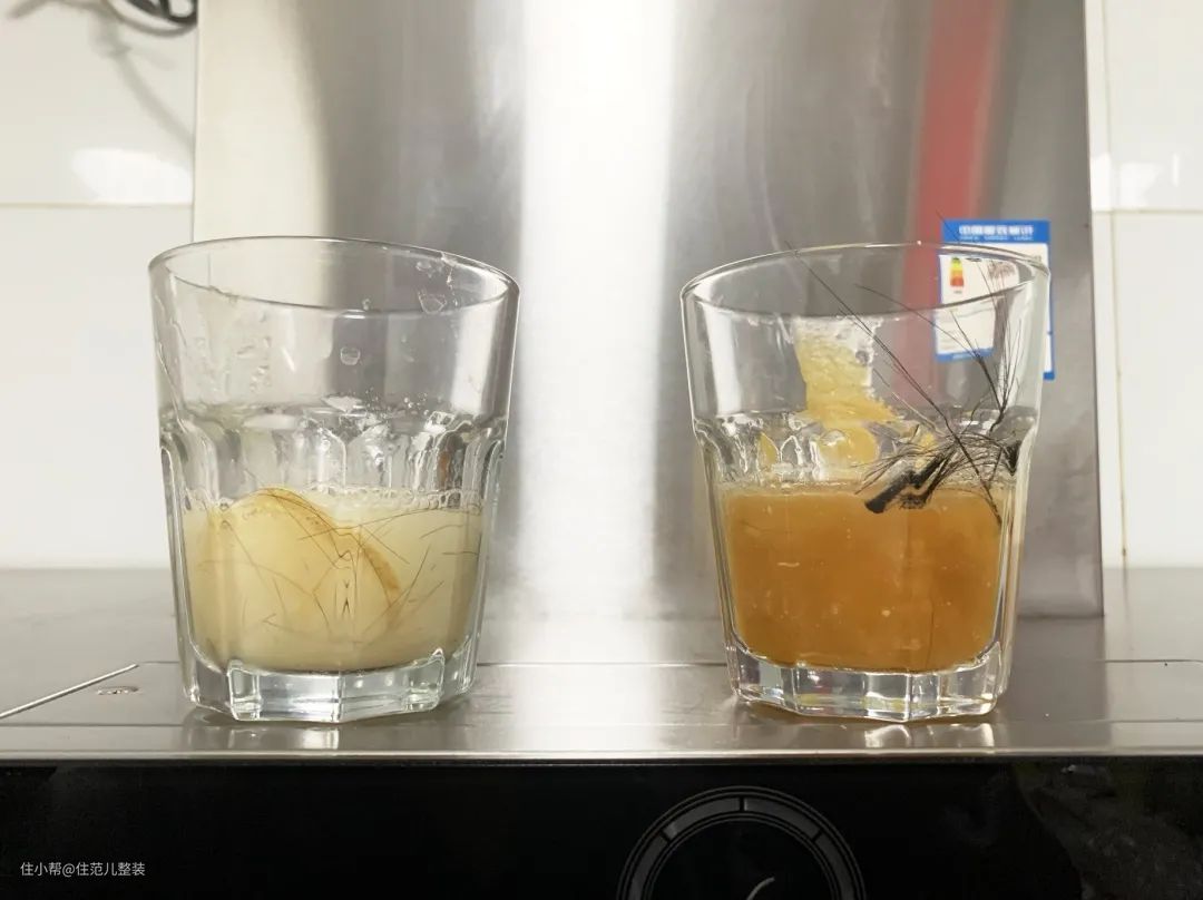 在杯壁上抹了一些蜂蜜,试着模拟管道壁的污渍。