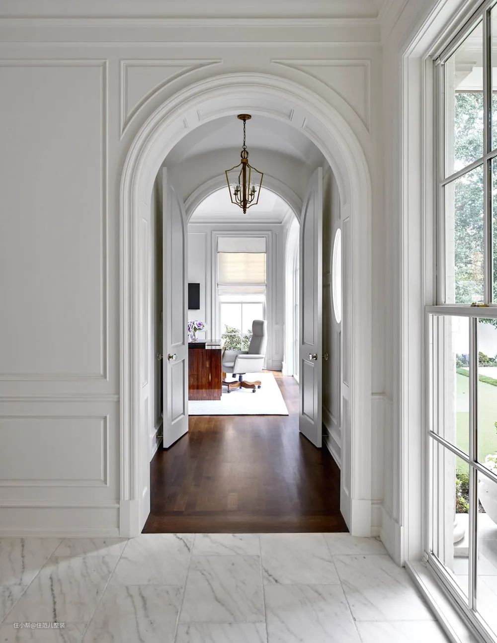 垭口也一样,完全没必要包,包括最近流行的拱门,留白、涂漆、贴面都是风格和点缀,根本不需要凸出一条垭口套。