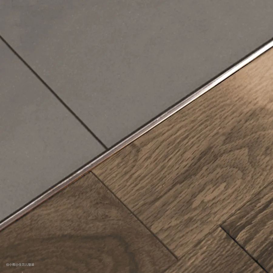 在施工上,这种做法叫“留缝”,材料和材料之间留出缝隙,既能缓冲材质又美观精致。