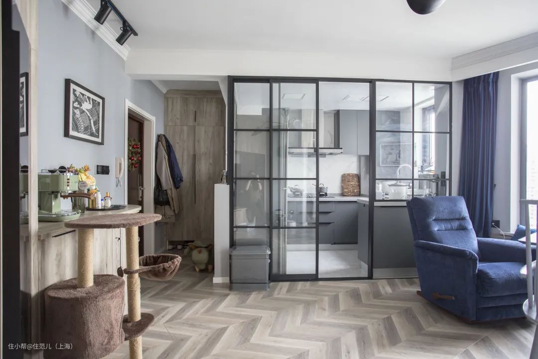 把厨房改成宽边开门,然后再装上玻璃移门或折叠门,造价不会贵很多,能在视野和采光上保持畅通,必要时又能起到一定的阻隔作用。