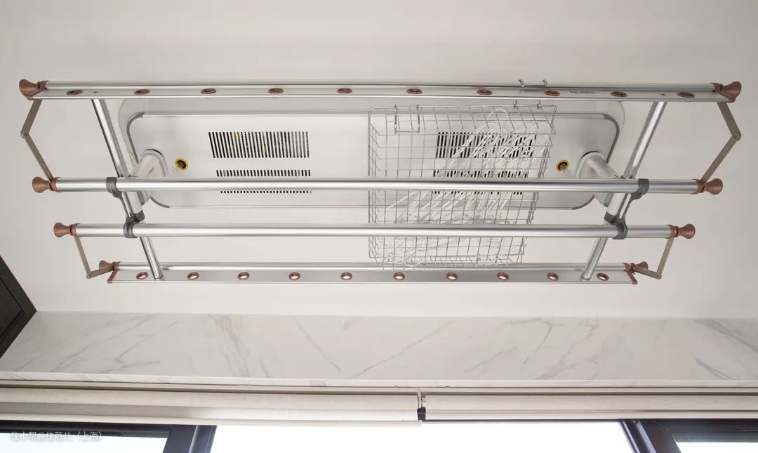 如果实在家里父母有这个家务习惯,那就为父母做一个有洗衣机、洗衣台、晾衣架专用的家务区,同时能存放大量的卫生和清洁用品。